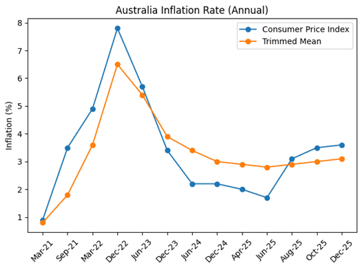 Graph shows annual movement. Source: Australian Bureau of statistics, Consumer price Index Jan 7 2026.